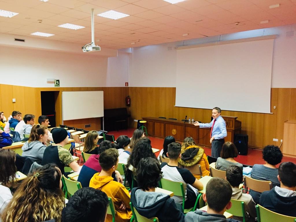 Como parte de su primera visita oficial a Zaragoza, Robert Riley, cónsul general de EEUU en Barcelona, ha dado una charla en inglés a estudiantes de bachillerato del IES PARQUE GOYA sobre su oficio como diplomático.